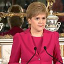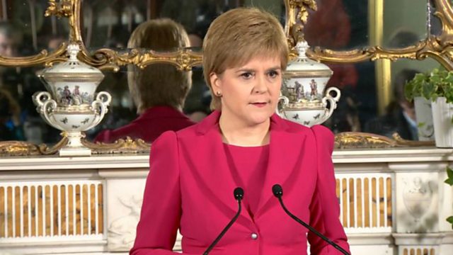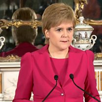 (Photo: Nicola Sturgeon speaking at her official Bute House residence in Edinburgh. Credit: BBC TV)