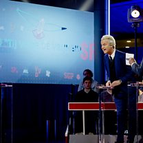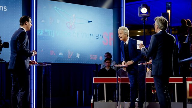 (Photo: Lodewijk Asscher of Labour Party (PvdA) (L) and Geert Wilders of the Freedom Party (PVV) (C) speak during a televised debate between the eight top party leaders in The Hague on March 14, 2017, a day before the parliamentary elections. Credit: ROBIN VAN LONKHUIJSEN/AFP/Getty Images)