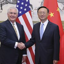 (Photo: Chinese State Councilor Yang Jiechi shakes hands with U.S. Secretary of State Rex Tillerson before their meeting at Diaoyutai State Guesthouse on March 18, 2017 in Beijing, China. Tillerson is on his first visit to Asia as Secretary of State. Credit: Lintao Zhang/Getty Images)
