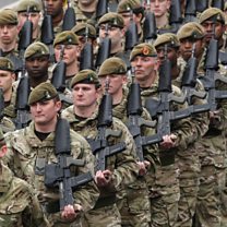 (Picture: British soldiers march during a pre-deployment parade. Credit: Getty Images)