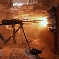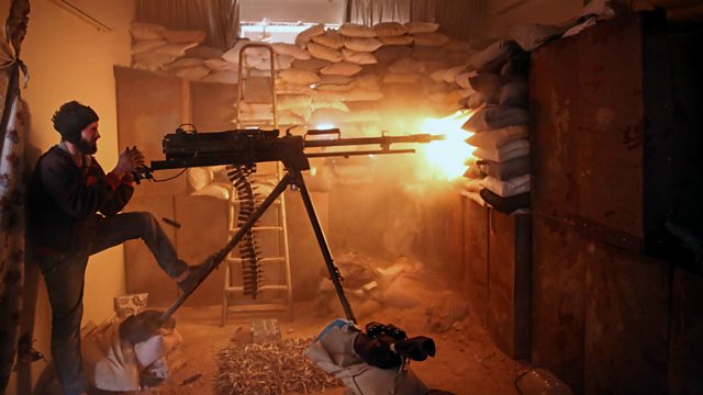 (Photo: An opposition fighter from the Failaq al-Rahman brigade fires a heavy machine gun in Jobar, a rebel-held district on the eastern outskirts of the Syrian capital Damascus, on March 19, 2017. Credit: Amer Almohibany/AFP/Getty Images.)