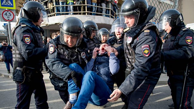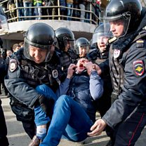 (Photo: Riot police detain a protester during anti-corruption rally in Moscow on March 26, 2017; Credit: AFP).