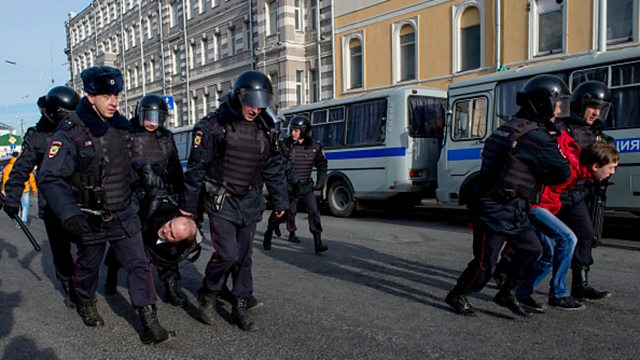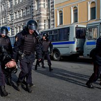 (Photo: Riot police officers detain protesters during an anti-corruption rally in Moscow. Credit: AFP/Getty Images).