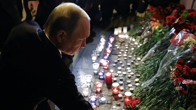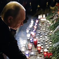 ( Photo: Russian President Vladimir Putin lays flowers outside metro station, St Petersburg. Credit: EPA)