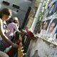 (Image: Women light candles in the destroyed school hall in Beslan. Credit: AFP/Kazbek Basayev)