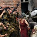 (Photo: Russian soldiers and two women take cover during the rescue operation of Beslan. Credit: AFP/ YURI TUTOVYURI TUTOV/GETTY.)