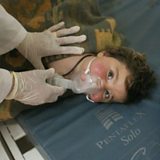 (Picture: Child victim of suspected chemical attack in Khan Sheikhoun Credit: EPA)