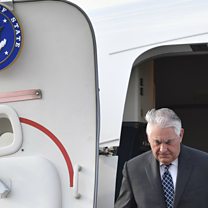 (Picture: US Secretary of State Rex Tillerson disembarks from an airplane upon his arrival at the Vnukovo II Government airport in Moscow. Credit: Alexander Nemenov/AFP/Getty Images)