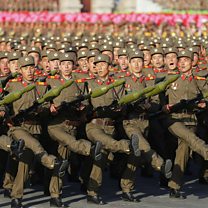 (Picture: North Korean soldiers march during a military parade at Kim Il-sung Square. Credit: Getty Images)