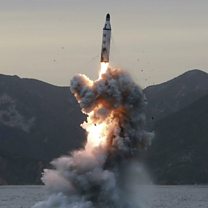 (Photo: North Korea test fires a submarine ballistic missile. Credit: European Photopress Agency)