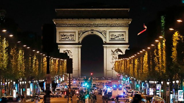 (Photo: Police officers block access to the Champs Elysees in Paris after the shooting. Credit: Getty Images)