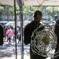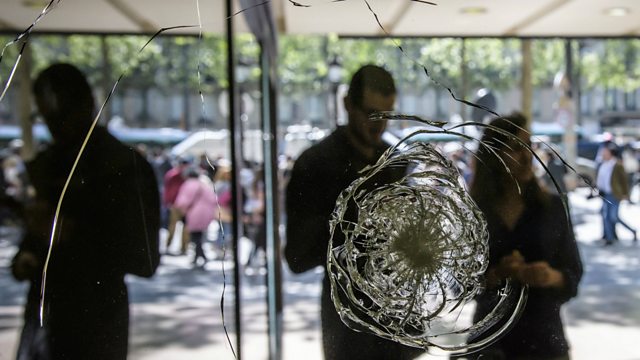 (Picture: Bullet impacts on a windows at Champs Elysee Credit: EPA)