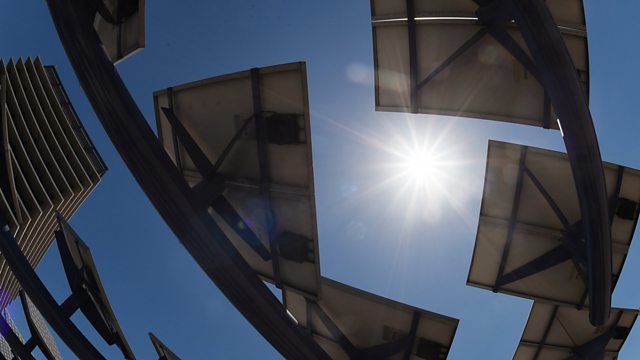 (Photo: Solar panels used to generate power outside an office building in Los Angeles, California. Credit: Mark Ralston/AFP/Getty Images)