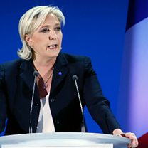 (Image: National Front leader Marine Le Pen addresses activists on 23rd April 2017 in Henin Beaumont, France. Credit: Chesnot/Getty Images)