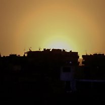 (Photo: Shot taken from a rebel-held town shows what appeared to be a blaze at Damascus airport. Credit: AFP)