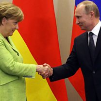 We bring you the latest as Vladimir Putin and Angela Merkel meet in Sochi, with Syria and Ukraine dominating the discussion.