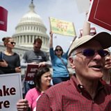 (Picture: Activists hold signs during a "Stop Trumpcare" rally in front of the Capitol in Washington, DC. Credit: Getty Images)