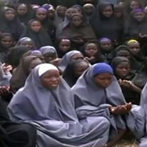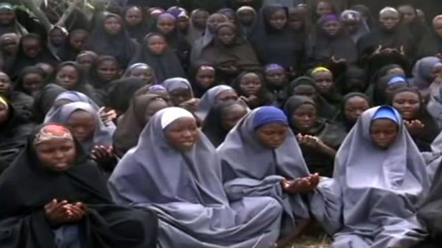 (Image: A still from a video of some of the girls from the village of Chibok being held captive by Nigerian Islamist extremist group Boko Haram. The still is dated 12th May 2014. Credit: AFP/Getty Images)