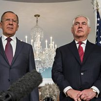 Photo: European Photopress Agency EPA: U.S. Secretary of State Rex Tillerson (R) and Russian Foreign Minister Sergey Lavrov (L) speak to the media at the State Department in Washington, DC, USA, 10 May 2017.