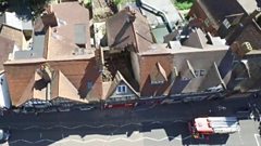 Drone footage of roof collapse