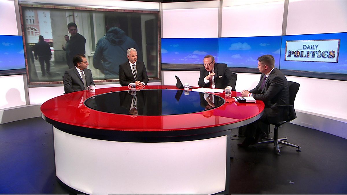 Tommy Robinson debated his visit with Quilliam chief executive Haras Rafiq, along with Daily Politics presenter Andrew Neil and foreign affairs analyst Tim Marshall.