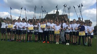 Pupils from Oaksey School near Malmesbury are getting involved by Nordic walking.