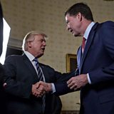(Image: President Donald Trump, shakes hands with James Comey, former director of the Federal Bureau of Investigation in the White House in Washington, D.C. on Sunday 22nd Jan. 2017. Credit: Andrew Harrer/Bloomberg/Getty Images)