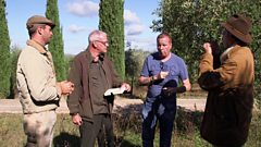 Karen and Andy watch the professionals successfully complete their first boar hunt at the beginning of hunting season.