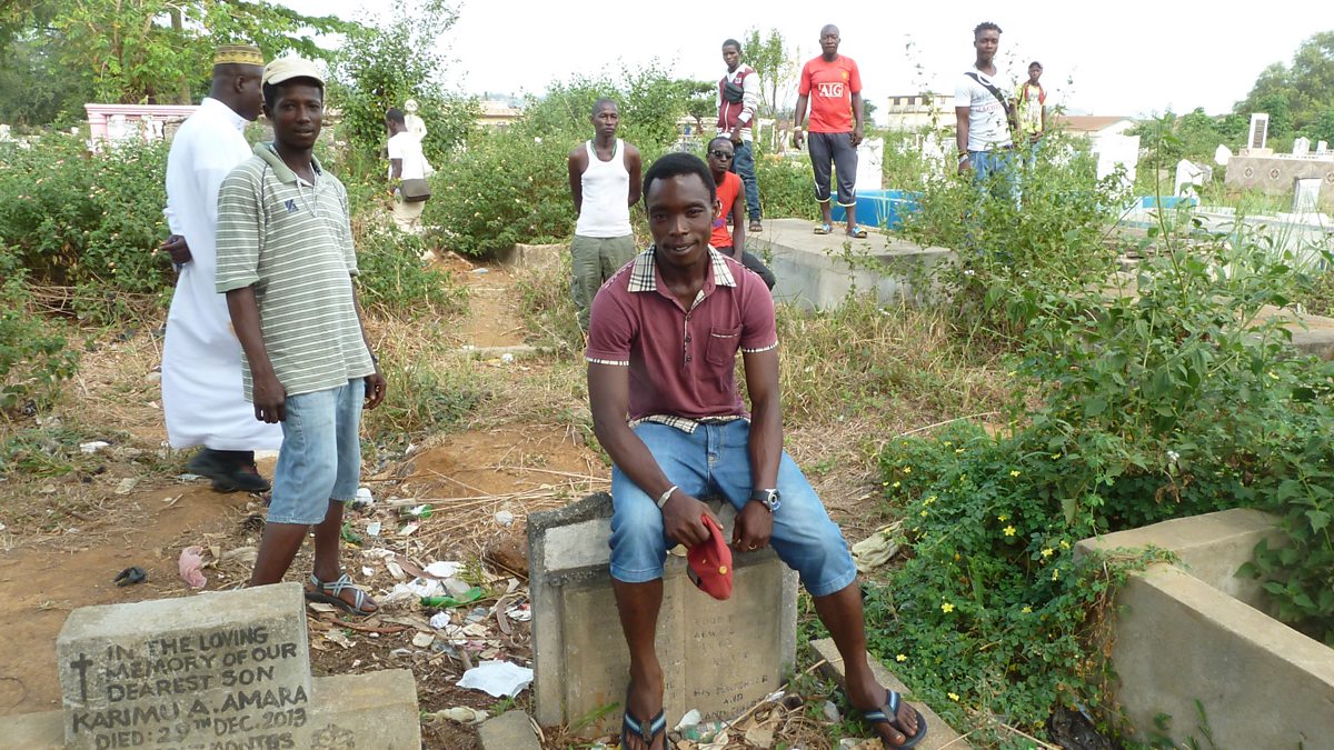 (Image: Young people in a cemetery in Freetown, Credit: BBC)