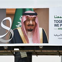 (Photo: A billboard in Riyadh marks the upcoming meeting between US President Donald Trump and Saudi Arabia's King Salman. Credit: Getty Images)