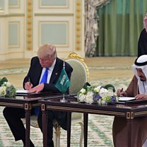(Photo: US President Donald Trump (L) and Saudi Arabia's King Salman bin Abdulaziz al-Saud take part in a signing ceremony at the Saudi Royal Court in Riyadh on May 20, 2017. Credit: Mandel Ngan/AFP/Getty Images)