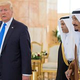 (Photo: US President Donald Trump after being welcomed by Saudi Arabia"s King Salman bin Abdulaziz Al Saud in Riyadh on 20 May 2017. Credit: Saudi Press Agency)
