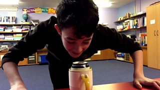Pupils from St Blane's Primary show us how to blow a can out of a mug.