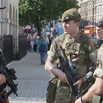 Investigation into whether Manchester attacker had several accomplices, Trump arrives in Brussels for talks with NATO and EU, did whales only recently become enormous ? (Photo: Policeman and soldiers in central London. Credit: PA)