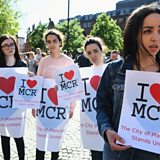 Picture: People gather at a candlelit vigil, honouring victims of Monday's terror attack at the Manchester Arena in England. Concert goers were leaving the venue after Ariana Grande had just finished performing when a suicide bomber struck. Greater Manchester Police are treating the explosion as a terrorist attack and have confirmed 22 fatalities and 59 injured.