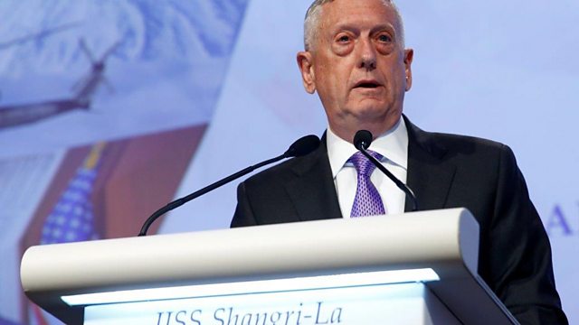 US Secretary of Defense James Mattis has both criticised and praised China for its role in Asia at a security forum in Singapore; Gina McCarthy used to run the Environmental Protection Agency under President Obama and opposes President Trump's decision to leave the Paris climate accord; Amos Oz, who is on the shortlist for the upcoming Man Booker International Prize, awarded annually for the best book translated into English.