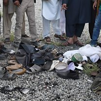 (Photo: Afghan men by the belongings of blast victims