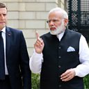 (Photo: Indian Prime Minister Narendra Modi speaks with French President Emmanuel Macron, in the garden of the Elysee Palace following their meeting in Paris. Credit: AFP/Getty Images.)