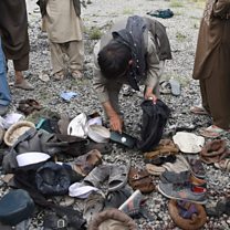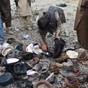 (Photograph shows Afghan men examining the belongings of blast victims. Credit: AFP/Getty Images)