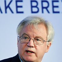 (Image: Make Brexit sign above David Davis head, credit: EPA)