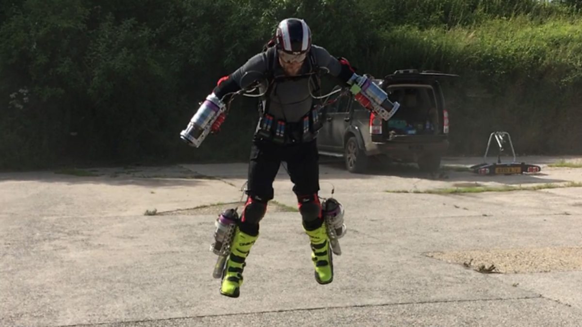 British inventor Richard Browning has built a flying suit using six miniature jet engines. How does he control it?