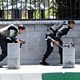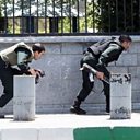 (Picture: Iranian forces take cover as they surround the parliament building. Credit: Tasnim News Agency/Reuters)