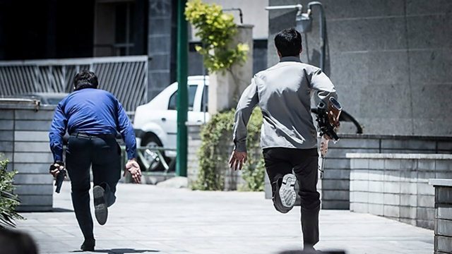 (Photo: Members of Iranian forces run during an attack on the Iranian parliament in central Tehran, Iran, June 7, 2017. Credit: Getty Images)