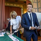 (Photograph shows French President Emmanuel Macron and wife Brigitte voting in parliamentary elections in Le Touquet. Credit: Reuters)