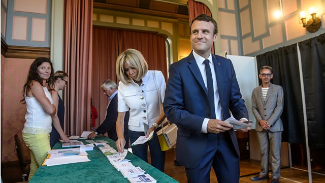 Exit polls in France's parliamentary election suggest President Emmanuel Macron's brand new centrist party has won a landslide victory. Also in the programme: Ireland's Prime Minister warns Theresa May over Tory-DUP deal; US man who spent 17 years in jail freed after his lookalike is found.