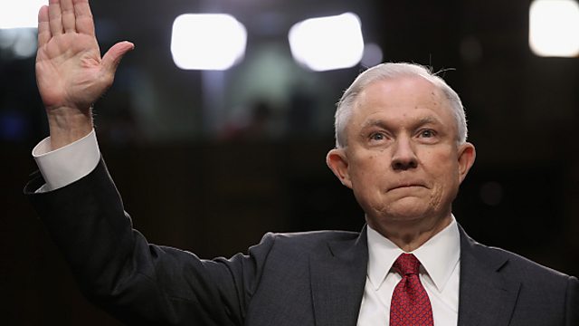 US Attorney General, Jeff Sessions, is testifying in public to the Senate Intelligence Committee on his role in the Russia investigation.