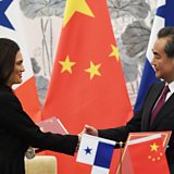 (Photograph shows Panama's Foreign Minister Isabel de Saint Malo and Chinese Foreign Minister Wang Yi shaking hands. Credit: Getty Images)