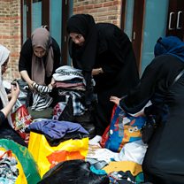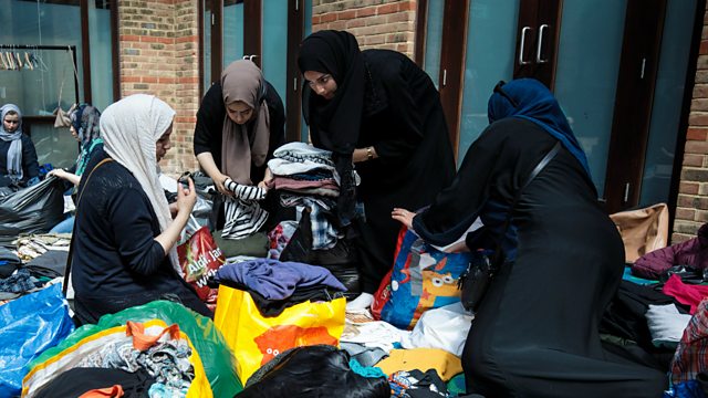 (Pictures: Volunteers sort through donations for fire victims at a Muslim Cultural Centre in London. At least seventeen people have been confirmed dead and dozens missing. Credit: Jack Taylor/Getty Images)