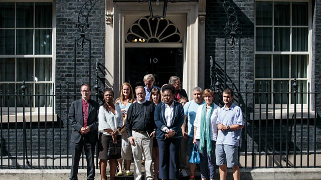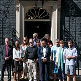 (photo: Community leaders from the Grenfell Tower outside Number 10 Downing Street after meeting with British Prime Minister Theresa May. Credit: Getty)