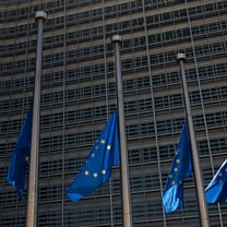 (Photo: EU flags fly at half-mast outside the European Commission building for the start of Brexit negotiations. Credit: Getty Images)